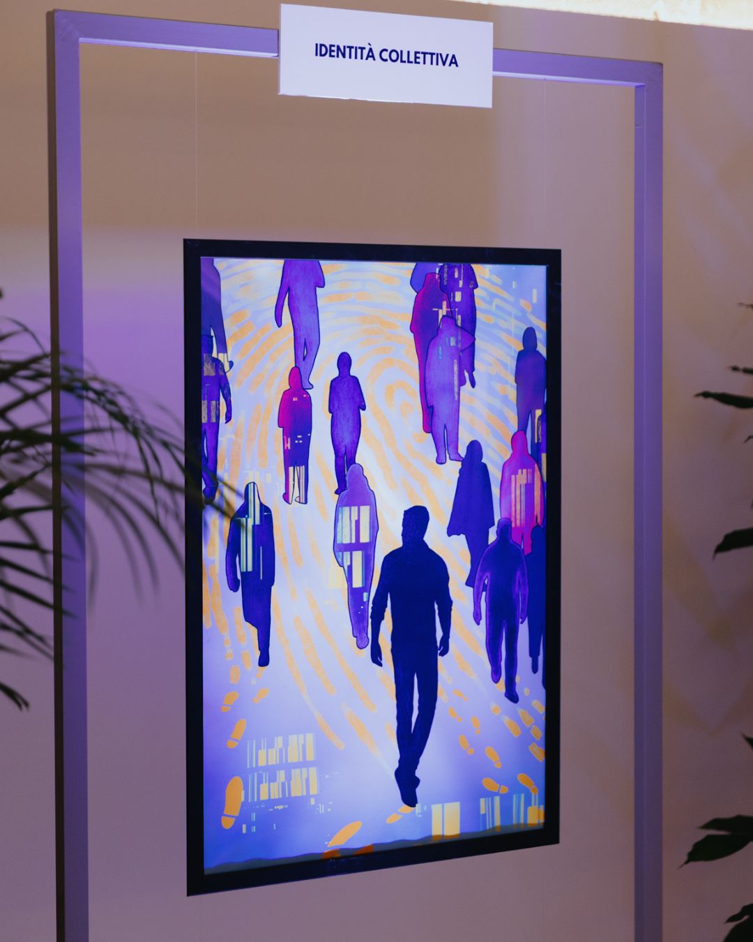 • Alla base dell’albero emerge una figura umana orientata al futuro, che trasforma la tecnologia in uno strumento accogliente e propositivo: l’uomo al centro.